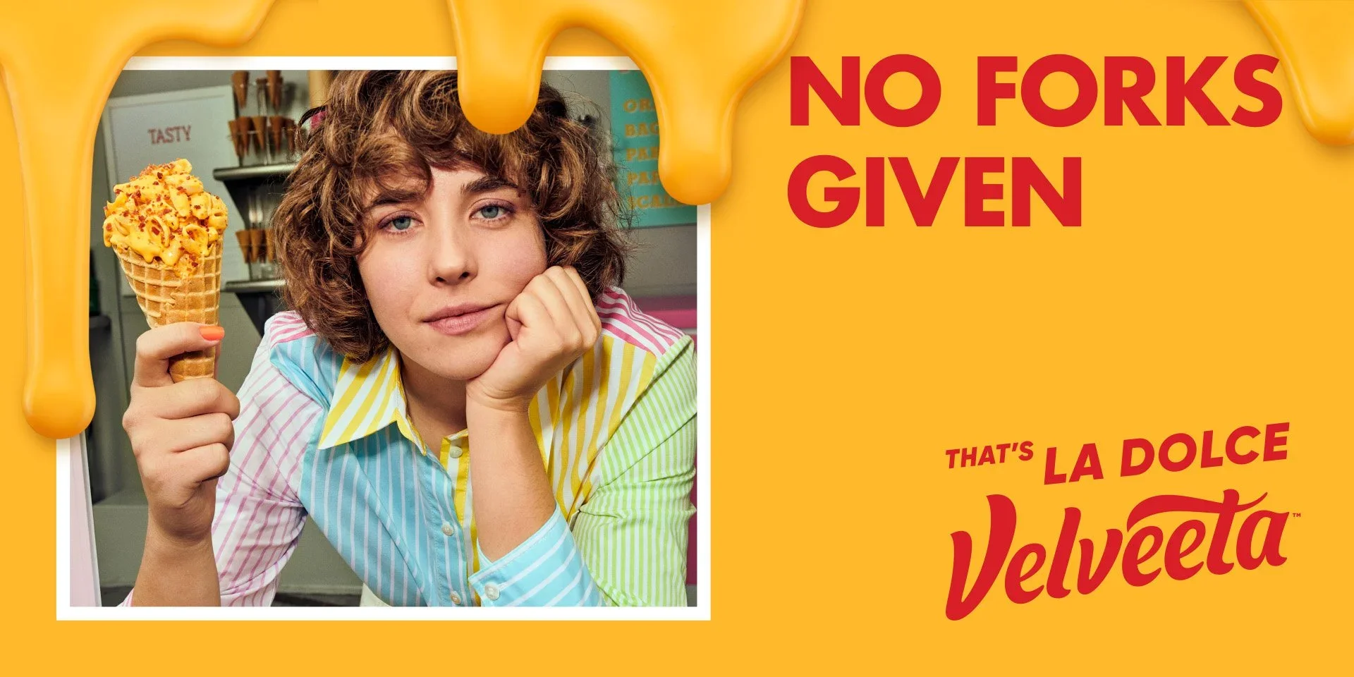"La Dolce Velveeta" : Inspired by the Italian concept of La Dolce Vita, the strategy was to treat Velveeta not as food, but as a "high-fashion" lifestyle. If we treat a $5 block of cheese with the same decadence and swagger as a Gucci campaign, we create a "surround sound" of irony and desire that captures cultural attention.